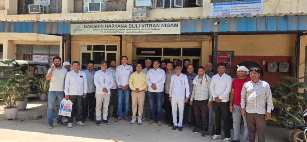 फरीदाबाद : कर्मचारियों की 19 सूत्रीय माँगों को लेकर पूर्व में दिए यूनियन के एजेंडे पर आज सेक्टर-23 स्तिथ अधीक्षण अभियन्ता ऑपरेशन जितेंदर सिंह ढुल के निमंत्रण पर हरियाणा स्टेट इलेक्ट्रिसिटी बोर्ड वर्कर यूनियन (हेड ऑफिस भिवानी-292) सर्कल फरीदाबाद का प्रतिनिधि मण्डल सर्कल सचिव लेखराज चौधरी के नेतृत्व में वार्ता की टेबल पर मिला । यूनियन और अधिकारियों के साथ मुद्दों को लेकर हुई इस मीटिंग के दौरान प्रदेश कमेटी के नेता विनोद शर्मा चीफ ऑर्गनाइज़र सहित स्टेट उपप्रधान एवं ग्रेटर फरीदाबाद यूनिट के वर्तमान प्रधान सुनील चौहान व स्टेट जॉइंट सेक्रेटरी परवीन शर्मा विशेषरूप से मौजूद रहे ।