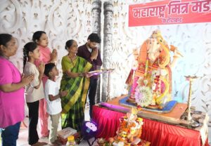 फरीदाबाद : मंडल द्वारा गणेश प्रतिमा की स्थापना 07 सितम्बर को प्रातः 11 बजे पूर्ण विधि विधान एवं मंत्रोच्चार के साथ सम्पन्न हुई । स्थापना पूजा मंडल के सचिव चिंतामणी वेद्य एवं अर्चना वेद्य द्वारा सम्पन्न हुई। पूजा के बाद गणेश प्रतिमा की आरती भी की गई ।