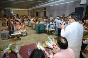 फरीदाबाद (मनीष शर्मा) : फरीदाबाद विधानसभा सीट से भारतीय जनता पार्टी के प्रत्याशी विपुल गोयल ने सेक्टर-12 स्थित सेंट्रल व्यू होटल में आयोजित कार्यक्रम में जहां उपस्थित सैकड़ों लोगों ने उनका जोरदार स्वागत किया और भारतीय जनता पार्टी में अपनी आस्था प्रकट की। इस मौके पर उपस्थित लोगों को संबोधित करते हुए उन्होंने कहा कि विपक्ष के झूठे प्रोपगेंडा में न फंसकर अपने बच्चों के हित में मतदान करें। कांग्रेस पार्टी ने प्रदेश को लूटने का काम किया है और अब फिर से लोगों को झूठे प्रलोभन में फंसाकर सरकार बनाने का सपना देख रही है। उन्होंने कहा कि प्रदेश में भारतीय जनता पार्टी की सरकार बनने जा रही है और 62 सीटों पर हम जीत रहे हैं। उन्होंने कहा कि लोकसभा से उत्साहित होकर कांग्रेस जो मिथ्या का प्रचार कर रही है, वह वास्तविकता से दूर है। झूठ की हांडी बार-बार नहीं चढ़ती। अब लोग उनके बहकावे में आने वाले नहीं हैं। लोग इनकी कथनी और करनी के बीच का अंतर जानते हैं।