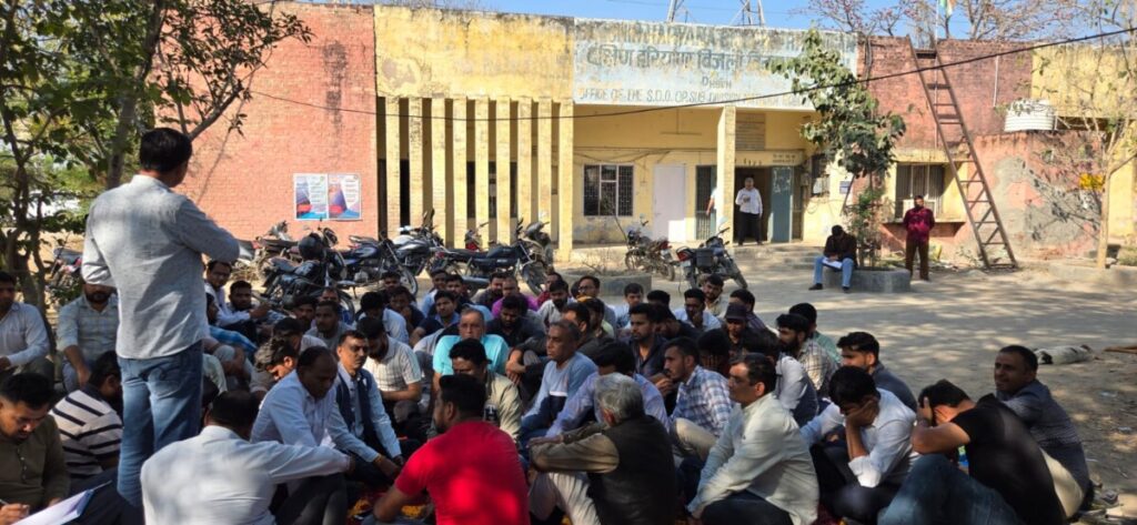 फरीदाबाद : बिजली निगम की सब डिवीजन तिलपत, खेड़ी कलां व मथुरा रोड, ईस्ट, वेस्ट, जवाहर कॉलोनी आदि बिजली दफ्तरों में प्रदेश स्तरीय यूनियन के आगामी होने वाले कर्मचारियों के विरोध प्रदर्शन कार्यक्रमों को लेकर हरियाणा कर्मचारी महासंघ से संबंधित हरियाणा स्टेट इलेक्ट्रिसिटी बोर्ड वर्कर यूनियन-292 (हेड ऑफिस भिवानी) फरीदाबाद सर्कल वर्क्स कमेटी की मीटिंग सर्कल सचिव लेखराज चौधरी के नेतृत्व में गेट मीटिंगें आयोजित की गई । जिसमें फरीदाबाद सर्कल की चारों डिवीजनों से आये यूनिट प्रधान व यूनिट सचिवों सहित तमाम कर्मचारी नेता मौजूद रहे । इस मौके पर राज्य कमेटी से प्रदेश चीफ ऑर्गनाइज़र विनोद शर्मा मुख्यरूप से उपस्थित रहे।