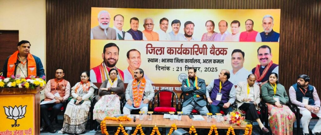 फरीदाबाद । भारतीय जनता पार्टी फरीदाबाद जिला कार्यसमिति की एक महत्वपूर्ण बैठक जिला कार्यालय “अटल कमल” में जिला अध्यक्ष पंकज पूजन रामपाल की अध्यक्षता में संपन्न हुई। बैठक में मुख्य वक्ता भाजपा प्रदेश महामंत्री सुरेन्द्र पुनिया, जिला प्रभारी नरेंद्र वत्स, राष्ट्रीय परिषद सदस्य संदीप जोशी, पूर्व शिक्षा मंत्री सीमा त्रिखा, पूर्व विधायक नरेन्द्र गुप्ता सहित अनेक वरिष्ठ नेताओं ने कार्यकर्ताओं का मार्गदर्शन किया। बैठक में पूर्व मुख्यमंत्री के पूर्व राजनैतिक सचिव अजय गौड़, नगर निगम महापौर प्रवीण बत्रा जोशी, पूर्व विधायक जगदीश नायर, महिला मोर्चा राष्ट्रीय पदाधिकारी टीना बेंटिक, प्रदेश कार्यकारिणी सदस्य ओमप्रकाश रक्षवाल, जिला महामंत्री शोभित अरोड़ा, चौधरी प्रवीण गर्ग, पूर्व जिला महामंत्री आर एन सिंह, वजीर सिंह डागर, पार्षद गण आदि मुख्य तौर पर उपस्थित रहे। बैठक का शुभारंभ दीप प्रज्वलन एवं राष्ट्रगीत के साथ हुआ और राष्ट्रगान के साथ बैठक का समापन हुआ । बैठक में संगठन की मजबूती, बूथ सशक्तिकरण, केंद्र व राज्य सरकार की जनकल्याणकारी योजनाओं को जन-जन तक पहुँचाने, आत्मनिर्भर भारत, एसआईआर, अटल स्मृति वर्ष तथा आगामी कार्य योजनाओं पर विस्तृत चर्चा की गई।