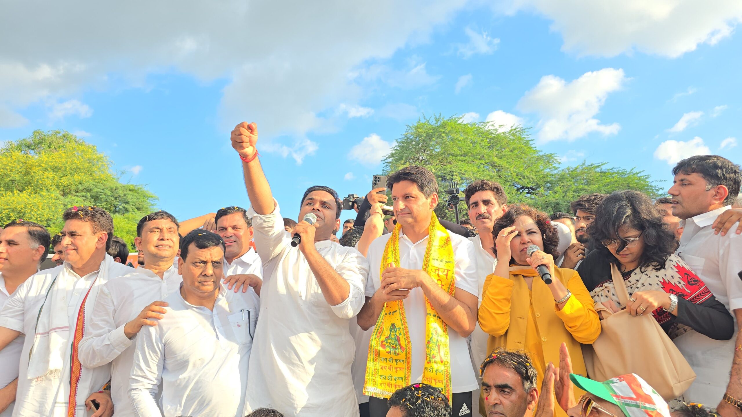 बल्लभगढ़ : लोकसभा सासंद दीपेंद्र सिंह हुड्डा के नेतृत्व में निकाली जा रही हरियाणा माँगे हिसाब विशाल पदयात्रा का बल्लभगढ़ विधानसभा में आगमन हुआ। यात्रा अग्रवाल धर्मशाला से प्रारंभ होकर अम्बेडकर चौक मेन बाजार महाराजा अग्रसेन चौक घण्टाघर होते हुए पंजाबी धर्मशाला तक गई। इसी बीच यात्रा के दौरान बल्लभगढ़ से कांग्रेस नेता गिरीश भारद्वाज के संयोजन में यात्रा मार्ग पर जगह-जगह भव्य स्वागत गेट बनवाकर विभिन्न-विभिन्न समाज के प्रतिनिधियों एवं सामाजिक संस्थाओं द्वारा सांसद दीपेंद्र हुड्डा का गर्मजोशी से ढोल-नगाड़ों, फूलमालाओं एवं दीपेंद्र हुड्डा जिंदाबाद कांग्रेस पार्टी जिंदाबाद जैसे गगनभेदी नारों से स्वागत किया गया।