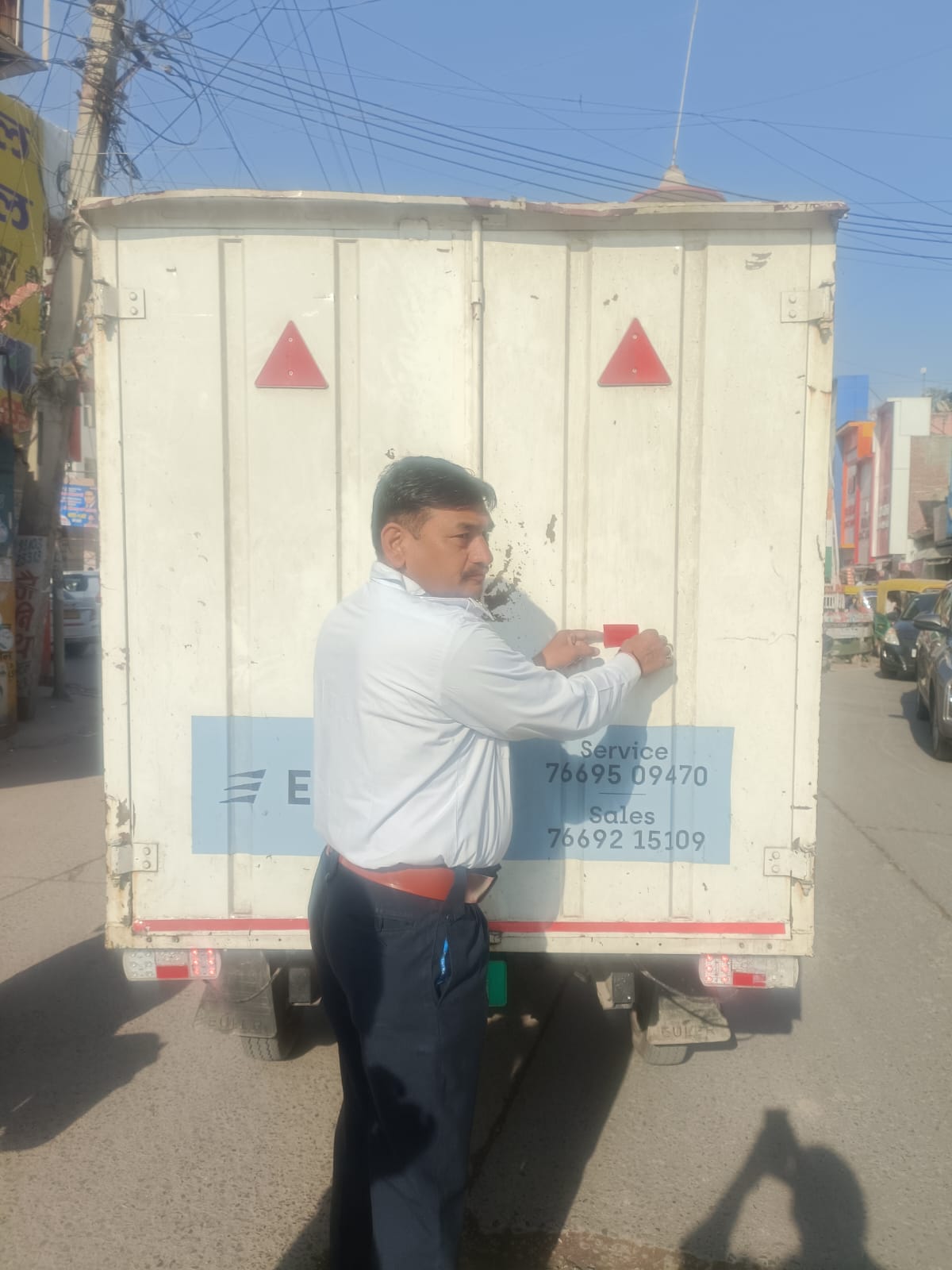 धुंध को देखते हुए यातायात पुलिस फरीदाबाद ने वाहनों पर रिफ्लेक्टर टेप लगाने का चलाया अभियान