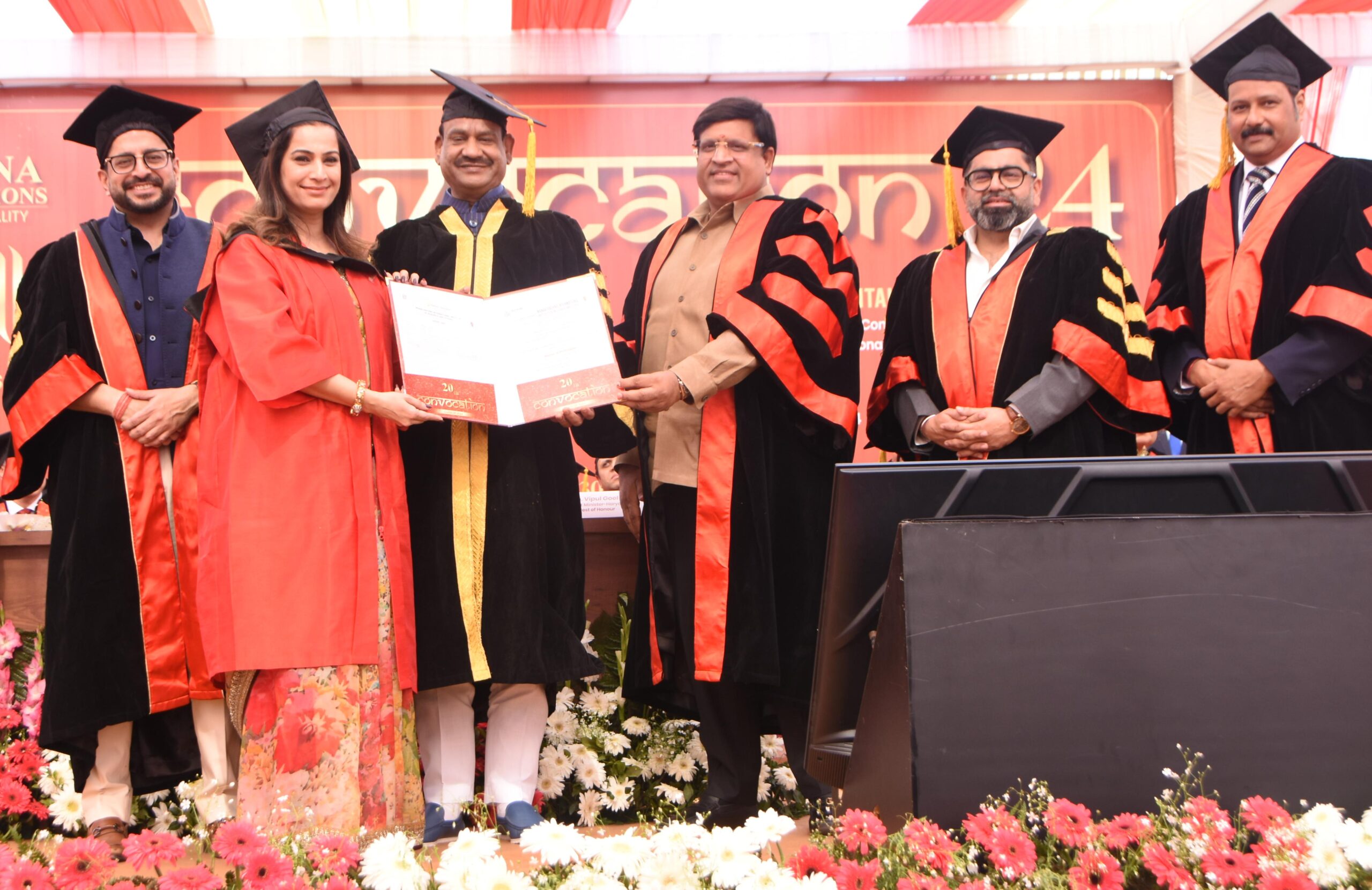 दीक्षांत समारोह में मानव रचना विश्वविद्यालय की ओर से सांसद अनुराग शर्मा, चेयरपर्सन हरियाणा जल स्रोत केशनी आनंद अरोड़ा, आलोक शर्मा, पंकज बंसल, पंकज बंसल, पद्मश्री रानी रामपाल, संजय सेठी, डॉ. तनुजा सिंह, आनंद मेहता, डॉ. मनहेल थाबेट व प्रदीप मोहंती को पीएच.डी डिग्री की मानद उपाधि से अलंकृत किया।