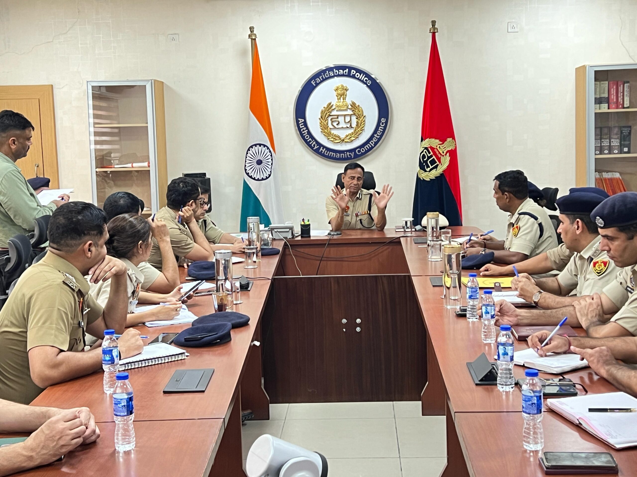 फरीदाबाद : नव नियुक्त पुलिस आयुक्त ओम प्रकाश नरवाल द्वारा पदभार संभालते ही अपने कार्यालय में सभी पुलिस उपायुक्त व सहायक पुलिस आयुक्त के स्तर के अधिकारियों के साथ मीटिंग लेकर माहमहिम राष्ट्रपति के फरीदाबाद आगमन पर सुरक्षा व्यवस्था बारे जानकारी लेकर आवश्यक दिशा निर्देश दिए साथ ही जिला फरीदाबाद के सामान्य अपराधों के संबंध में भी चर्चा की।