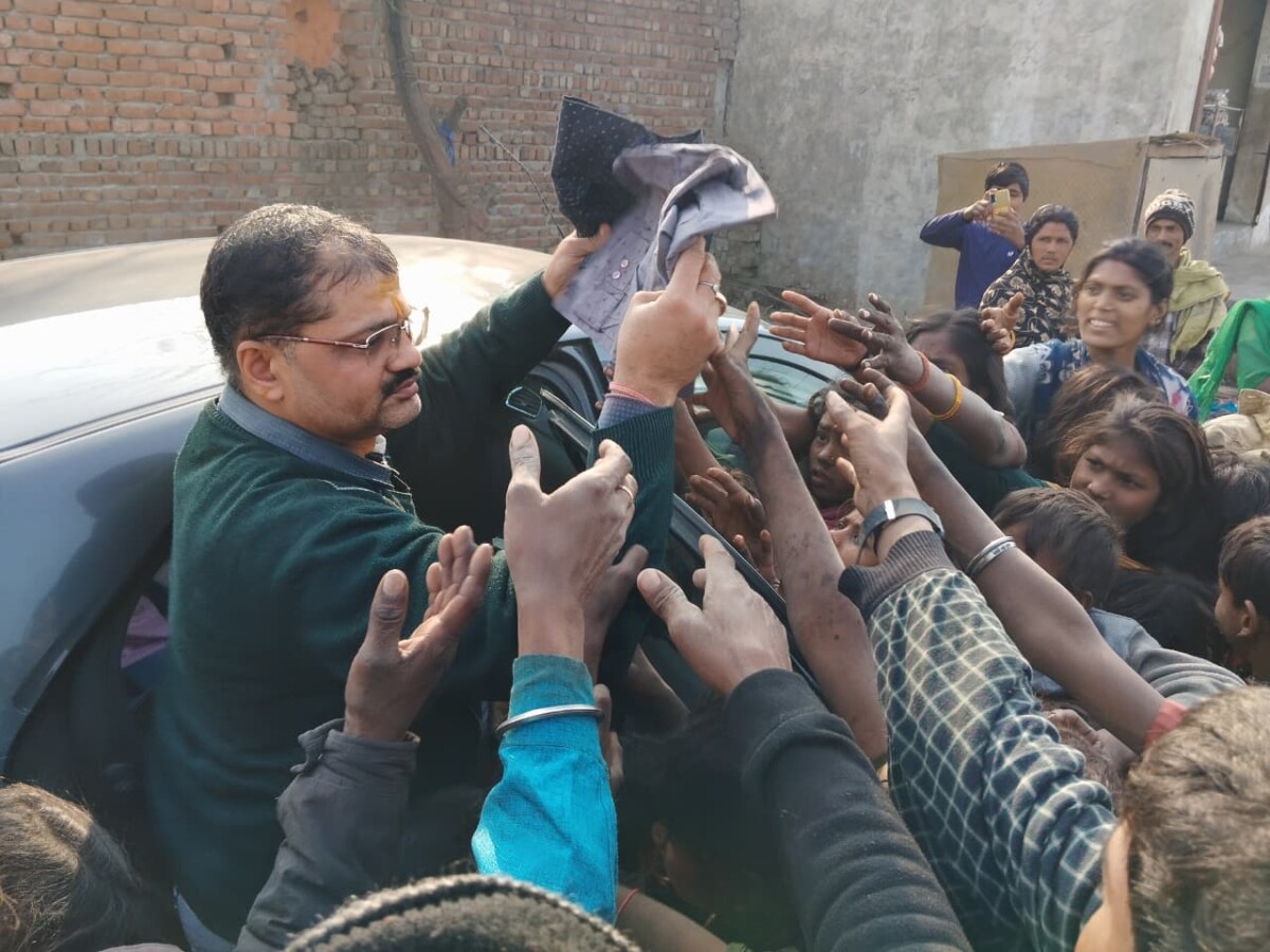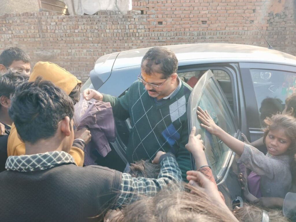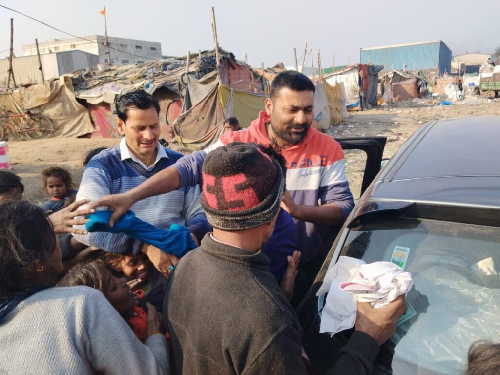 भारती चैरिटेबल ट्रस्ट द्वारा मकर संक्रांति के उपलक्ष्य में नंगला गांव की झुग्गियों में जरूरतमंदों को कपड़े वितरण किए गए
