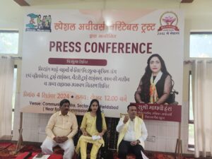 पत्रकार वार्ता में स्पेशल अचीवर्स चैरिटेबल ट्रस्ट की चेयरपर्सन माधवी हंस, ट्रस्टी पंकज हंस व टेकचंद नंदराजोग पत्रकारों को संबोधित करते हुए।