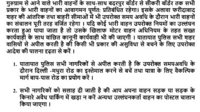 Traffic advisory for drivers on arrival of Union Home Minister to Faridabad