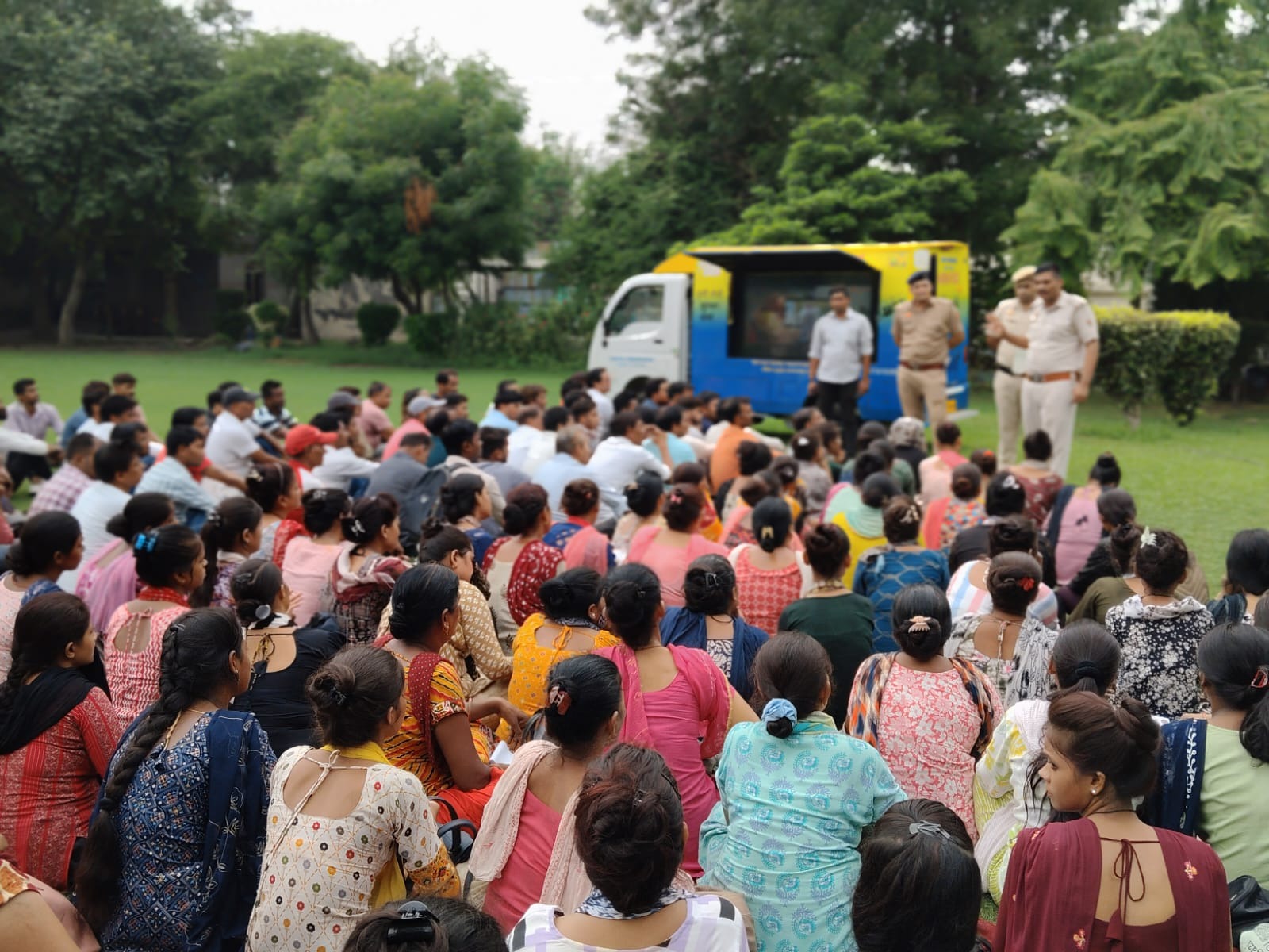साइबर थाना एनआईटी की टीम ने वीडियो वेन के माध्यम से लखानी फुटवियर कंपनी में करीब 400 कर्मचारियों को साइबर फ्रॉड के बारे में जानकारी देकर किया जागरूक