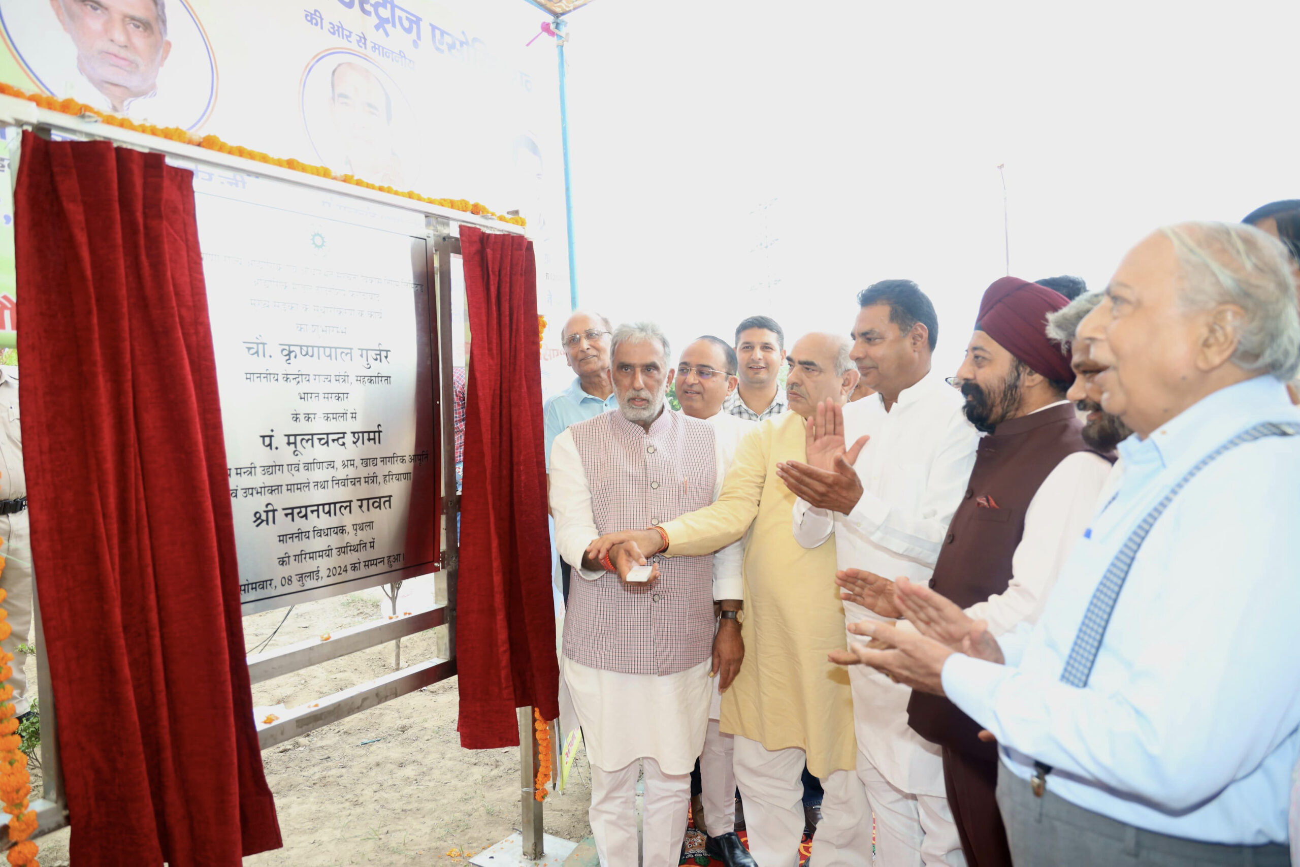 फरीदाबाद/बल्लबगढ़ : भारत सरकार के केंद्रीय सहकारिता राज्य मंत्री कृष्ण पाल गुर्जर और हरियाणा के उद्योग एवं वाणिज्य, श्रम, खाद्य नागरिक आपूर्ति व उपभोक्ता मामले तथा निर्वाचन मंत्री मूलचंद शर्मा और विधायक नयन पाल रावत ने आईएमटी क्षेत्र की पांच मुख्य 10 किलोमीटर लम्बी सड़को के जीर्णोद्धार करने के कार्य का नारियल तुड़वाकर शुभारंभ किया। एचएसआईडीसी विभाग द्वारा इन मुख्य 5 सड़कों का जीर्णोद्धार किया जाएगा। सड़को के जीर्णोद्धार कार्य पर लगभग 13 करोड़ 23 लाख रुपए की लागत का खर्चा आएगा। इस अवसर पर आईएमटीक्षेत्र में एक पेड़ मां के नाम अभियान के तहत पोधारोपण भी किया।