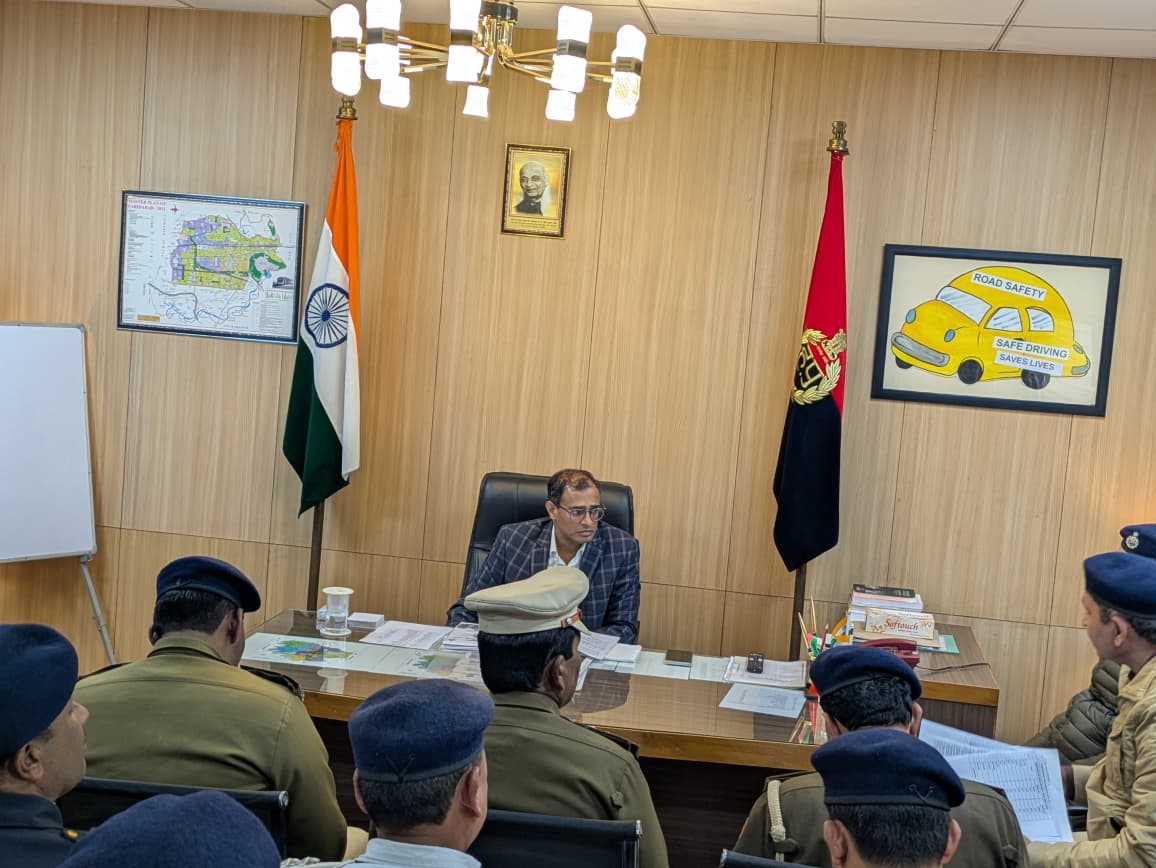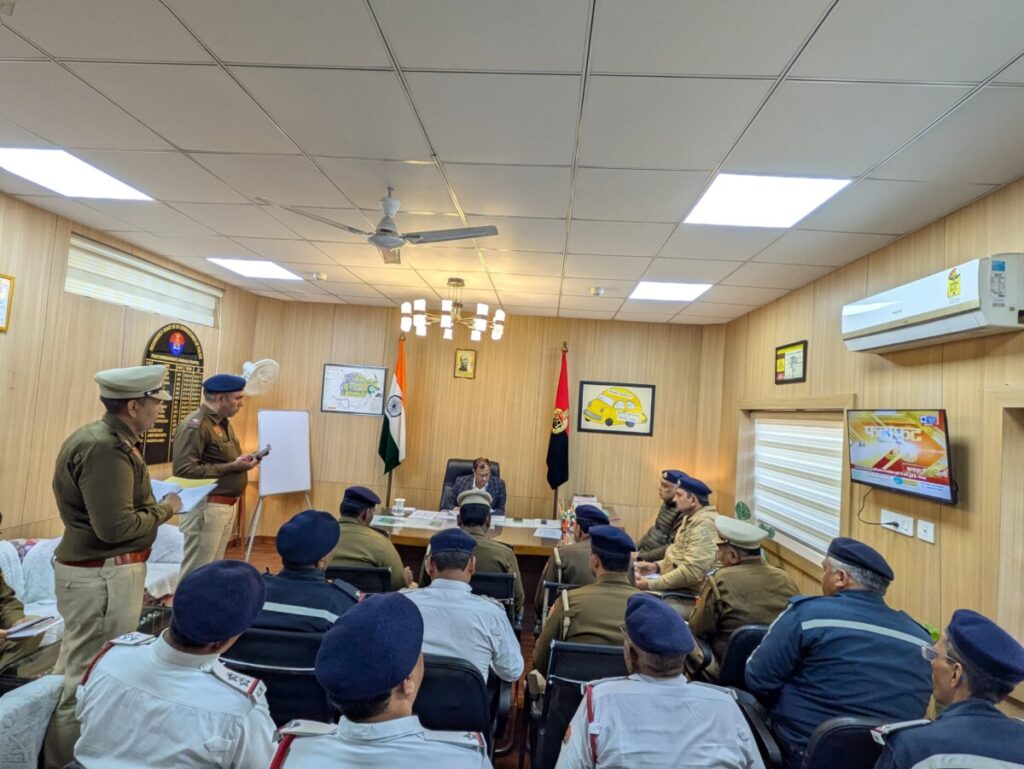 फरीदाबाद : डीसीपी ट्रैफिक कार्यालय, सेक्टर-12, फरीदाबाद में आज गणतंत्र दिवस समारोह एवं सूरजकुंड अंतरराष्ट्रीय हस्तशिल्प मेले के दौरान यातायात व्यवस्था को सुचारु बनाए रखने को लेकर एक महत्वपूर्ण बैठक आयोजित की गई। बैठक की अध्यक्षता डीसीपी ट्रैफिक एवं एनआईटी मकसूद अहमद, आईपीएस द्वारा की गई। बैठक में एसीपी ट्रैफिक (फर्स्ट एवं सेकेंड), एसएचओ ट्रैफिक, यातायात निरीक्षक एवं सभी ज़ोनल ऑफिसर्स उपस्थित रहे। बैठक के दौरान अधिकारियों को अपने-अपने क्षेत्रों में प्रभावी ट्रैफिक प्रबंधन, ड्यूटी प्लानिंग एवं जनसुविधा सुनिश्चित करने के निर्देश दिए गए, ताकि आम नागरिकों को किसी प्रकार की असुविधा न हो।
