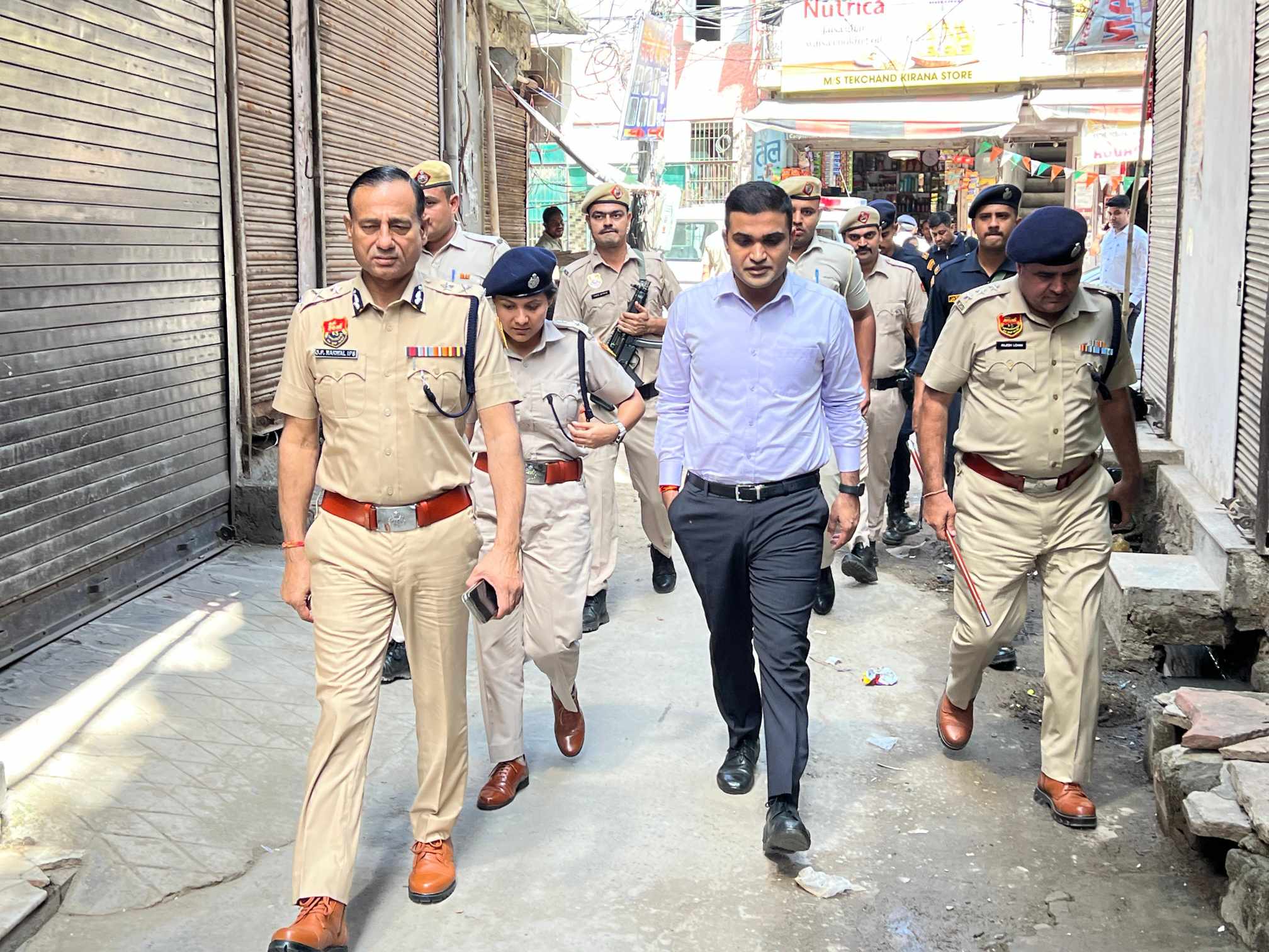 फ्लैग मार्च मार्ग : – फ्लैग मार्च का काफिला बदरपुर बॉर्डर से चलकर सराय ख्वाजा → तिलपत → खेडी पुल → भारत कॉलोनी → जसाना → मझावली → अलीपुर → घरौडा → चान्दपुर → इमामुद्दीन पुर→ फैजूपुर खादर → अरुआ → मौठूका → छायंसा → मोहना → हीरापुर → नरियाला → नरहावली → अटाली → दयालपुर → मच्छगर → चंदावली → बल्लबगढ़ शहर → सेक्टर-58 → राजीव कॉलोनी → सेक्टर-56 → संजय कॉलोनी मोड़→ गौच्छी → नगला→ पाली → गोठडा मोहताबाद → पाबटा → पाखल → वापस पाली → भाखंरी → बड़खल होते हुए कार्यालय पुलिस आयुक्त सेक्टर-21 सी पर पहुंचा।